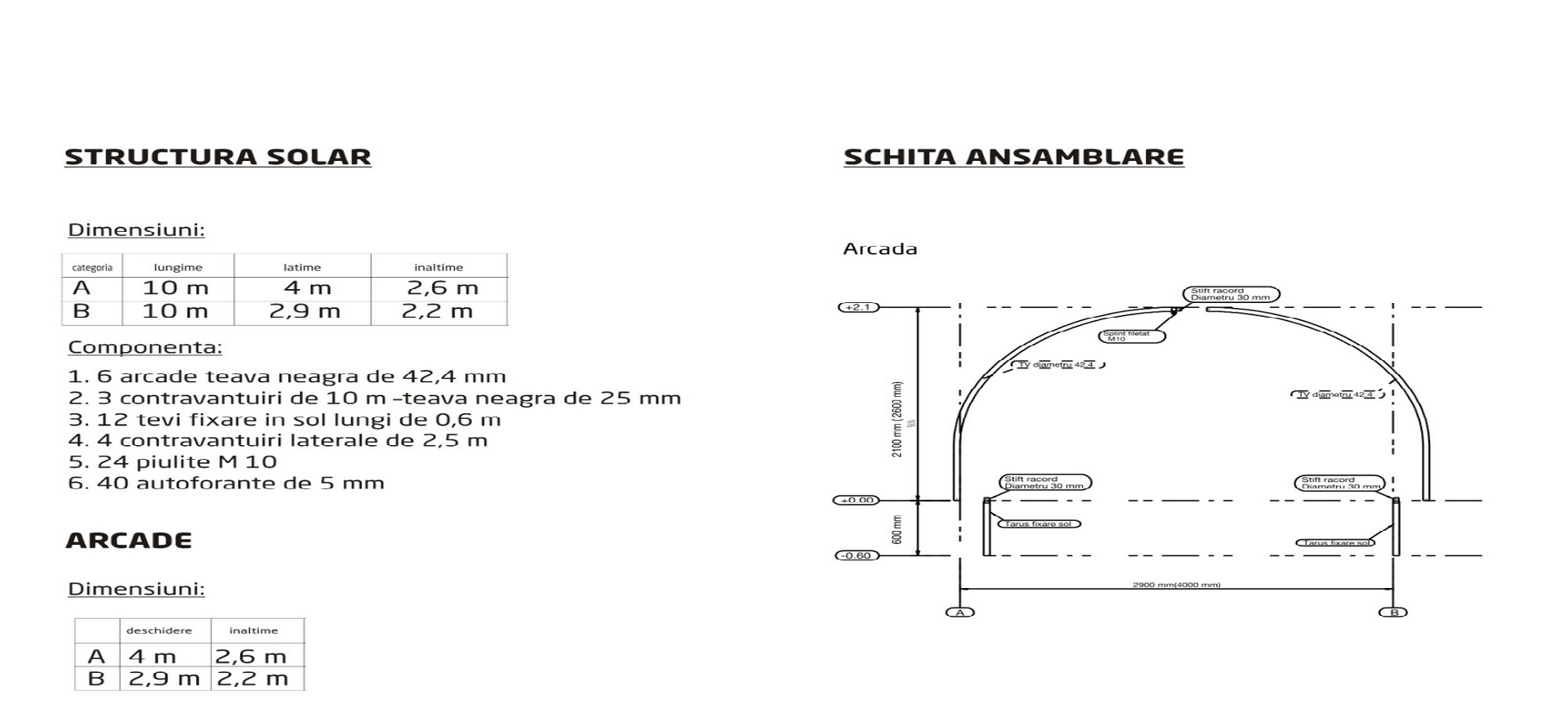 Nu.Prinderea structurii se face in tevi de sustinere, batute direct in pamant, 60 cm in sol.